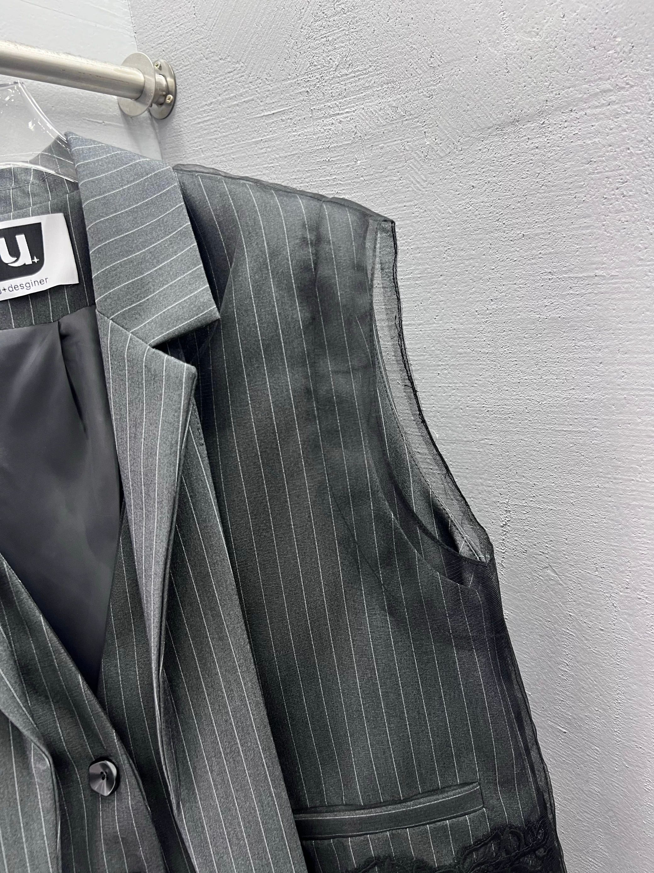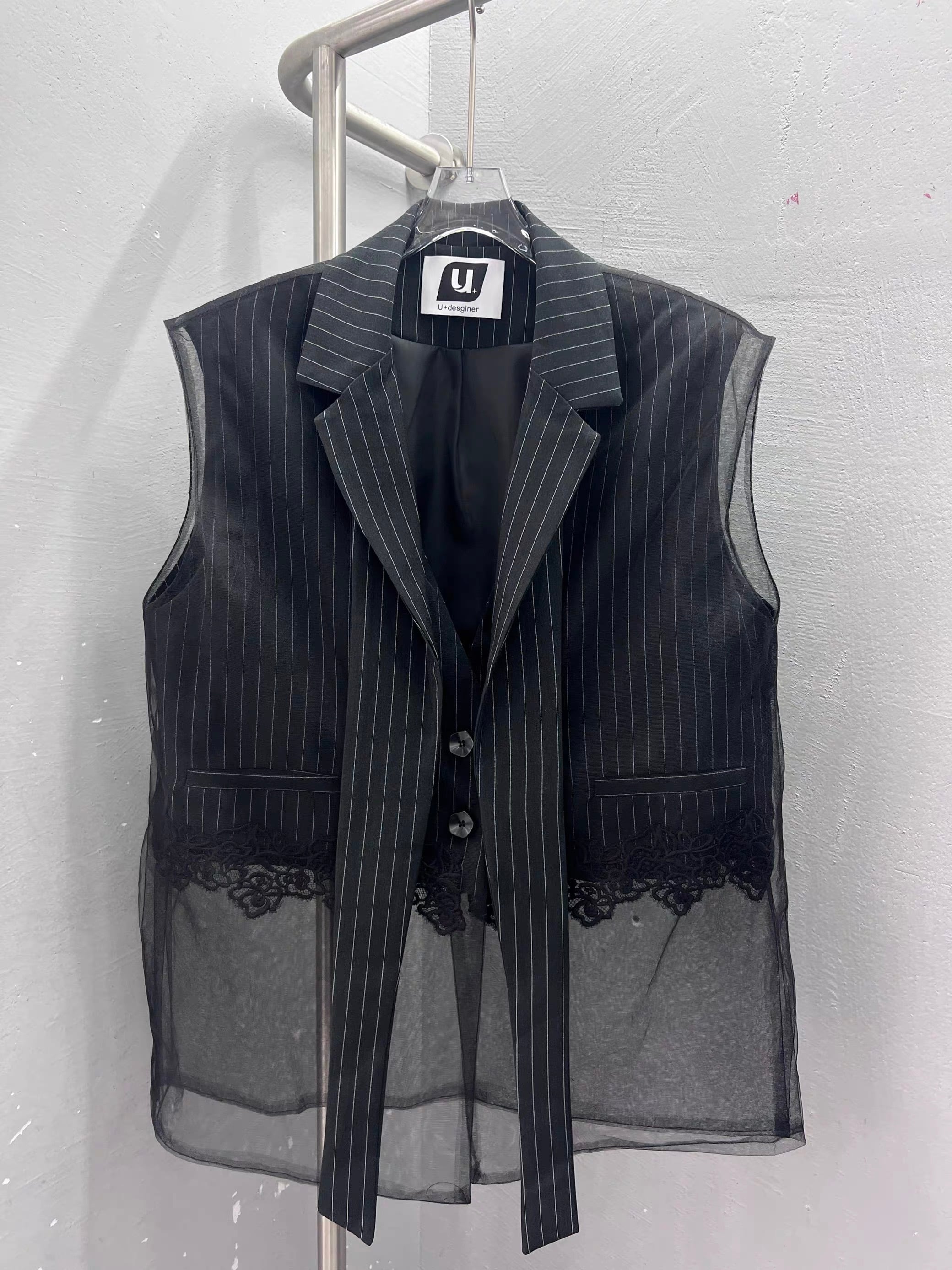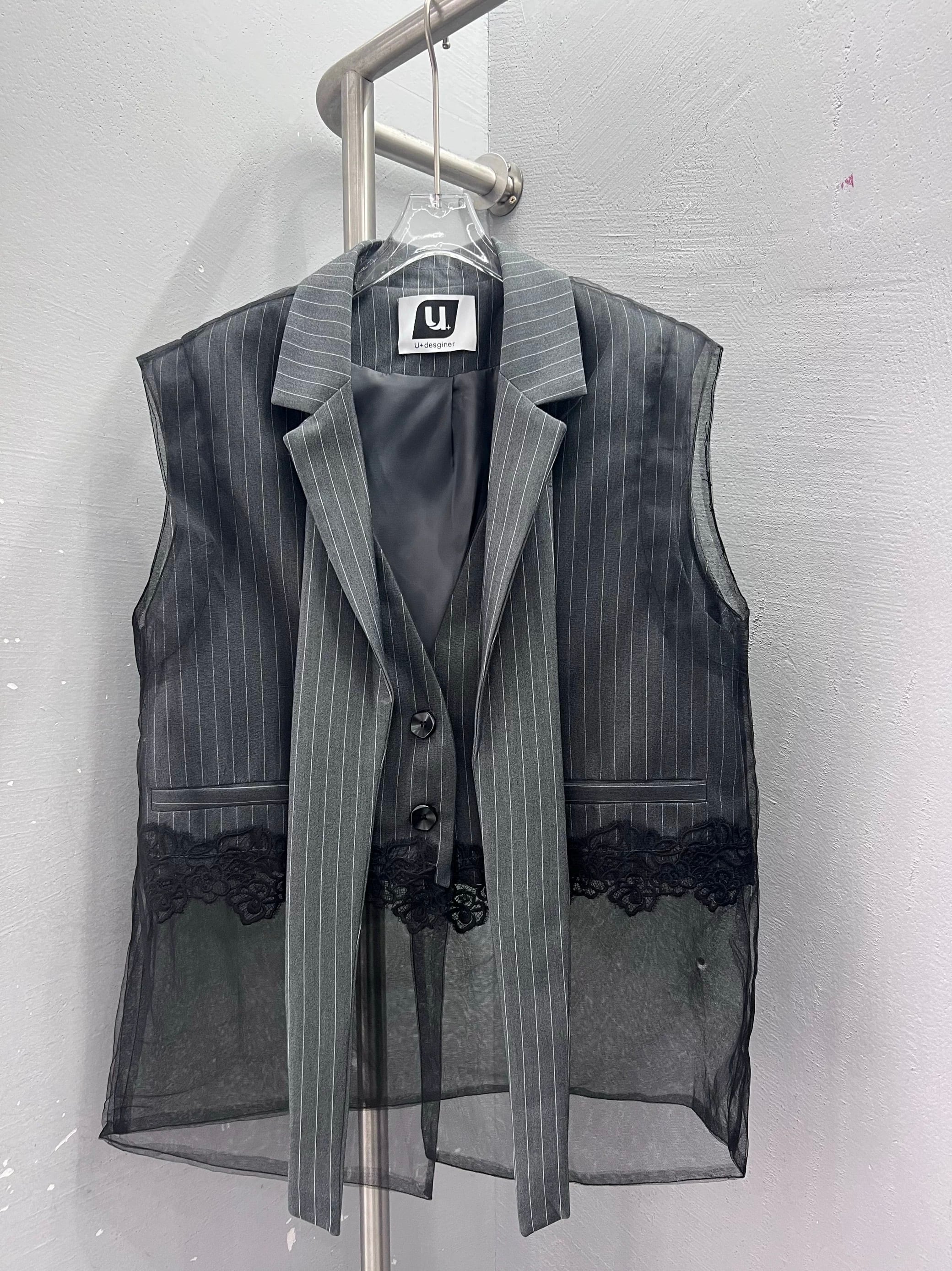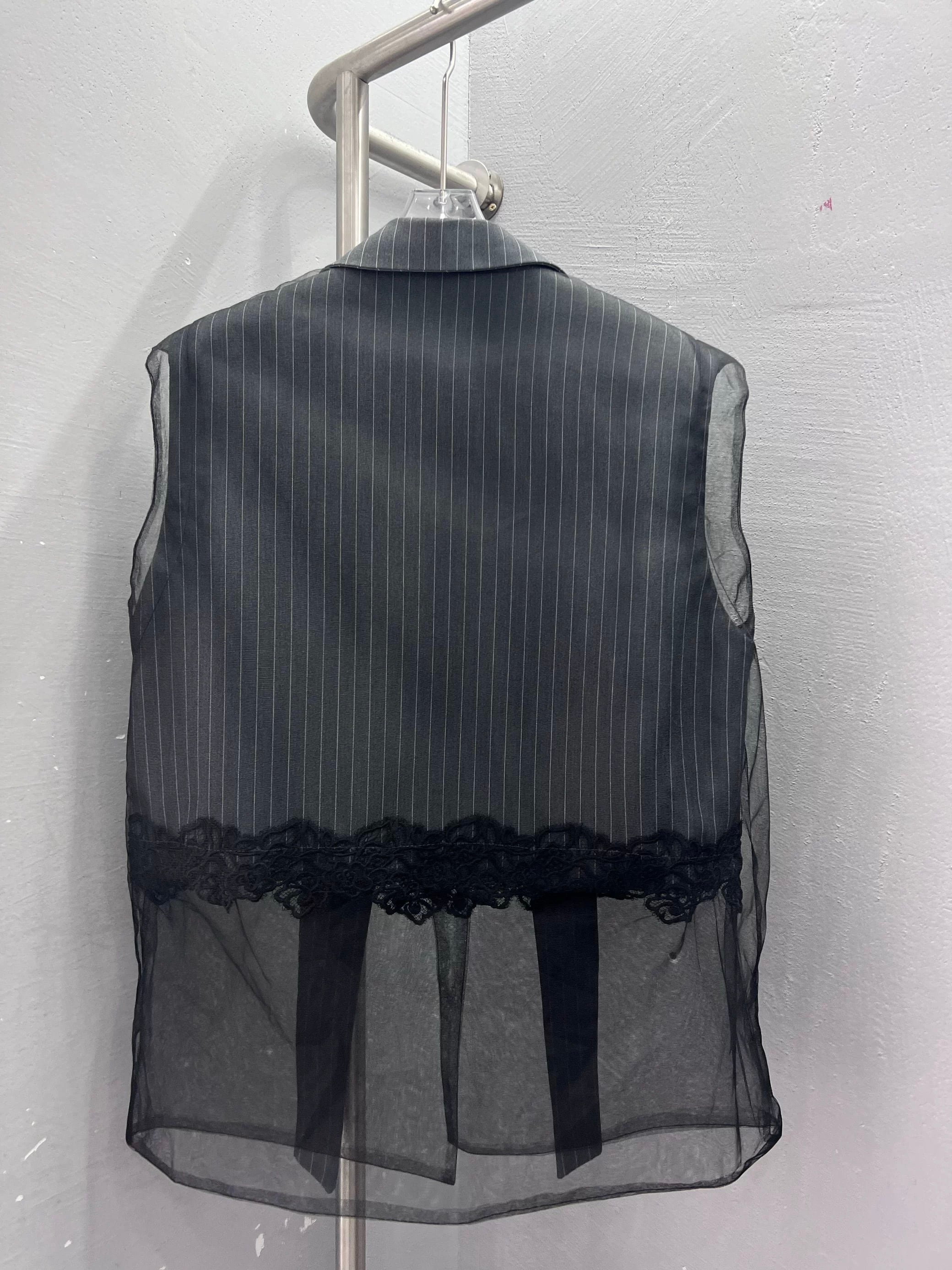【ストライプ×シアーレース切替】テーラードデザインシアーベスト