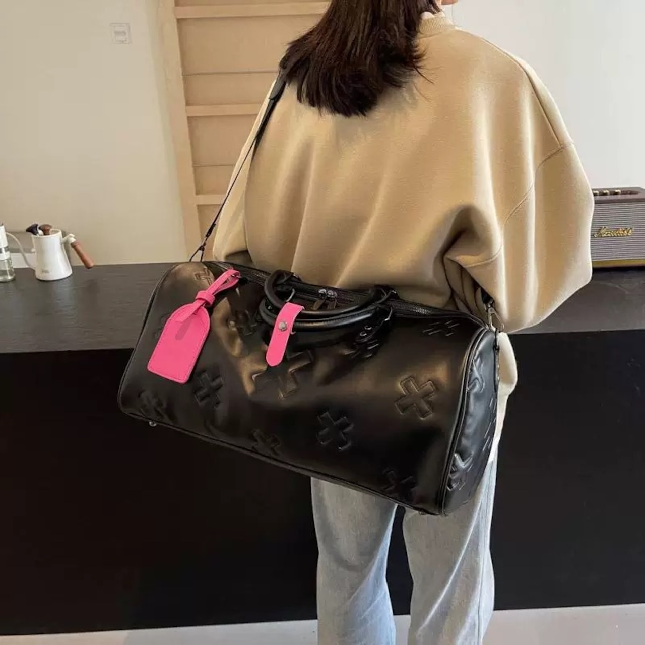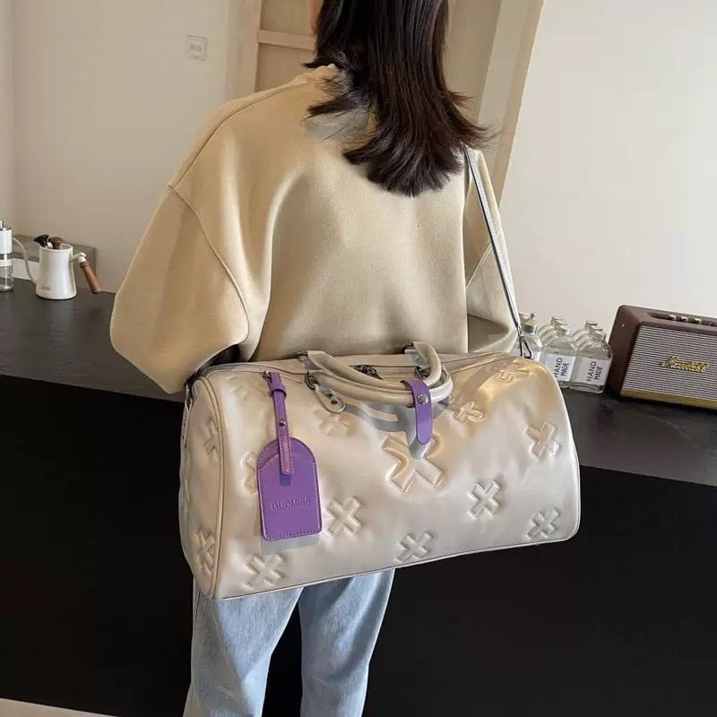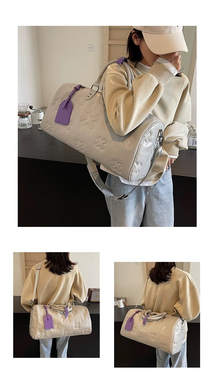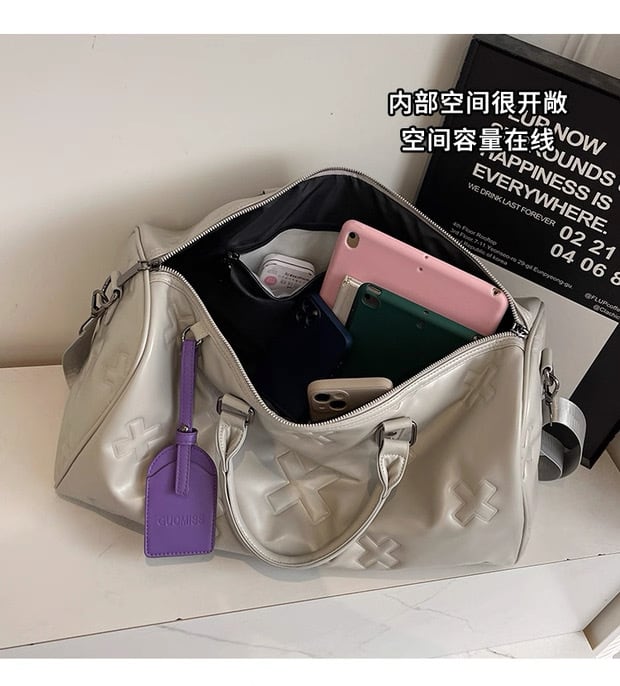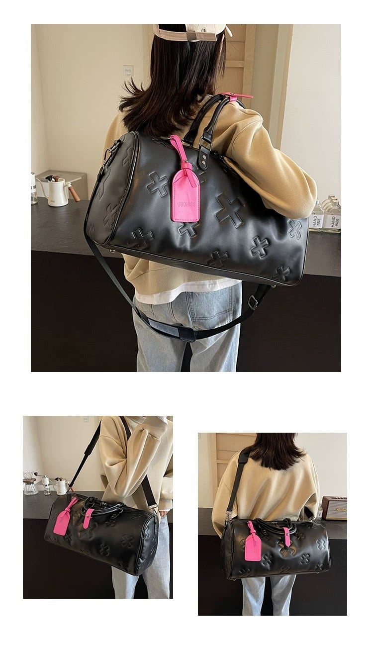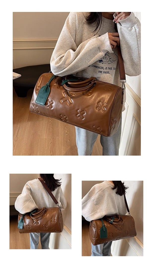 【大容量2WAY】クロスエンボスデザインPUレザーボストンバッグ