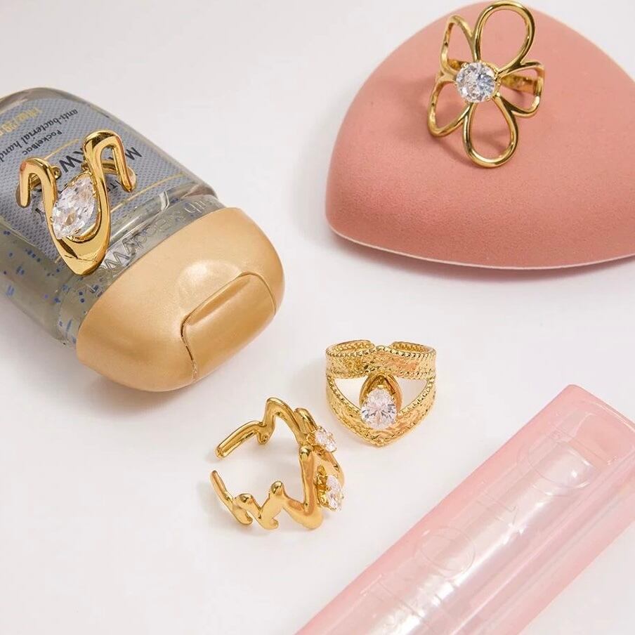 【フリーサイズ】フラワーモチーフ×ジルコニアデザインリング(ステンレス/アレルギー対応)