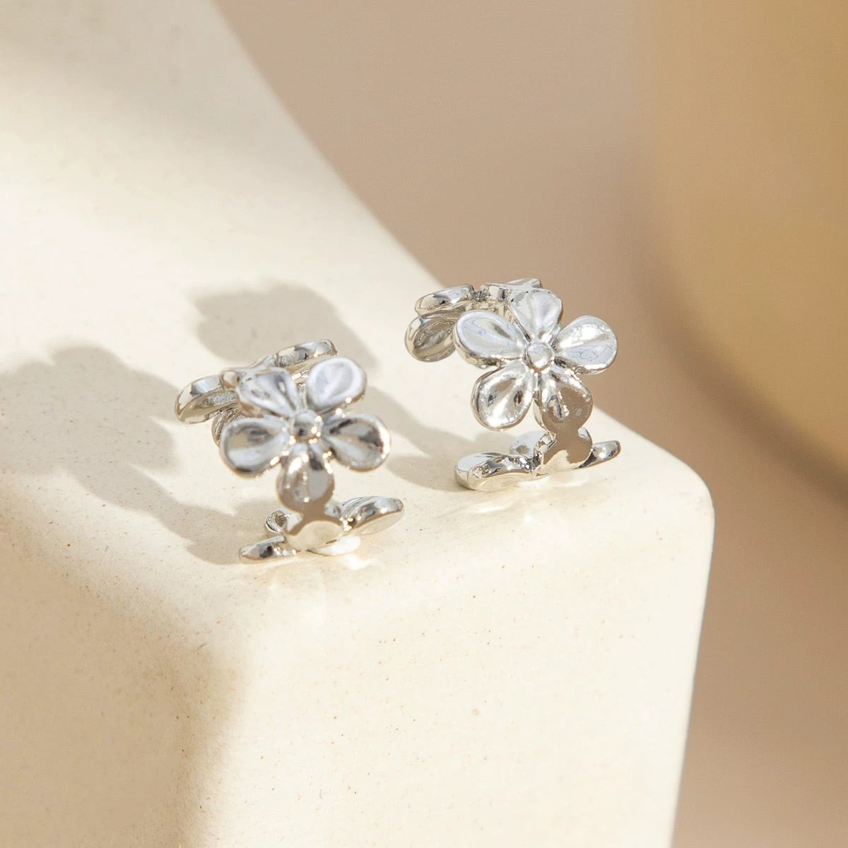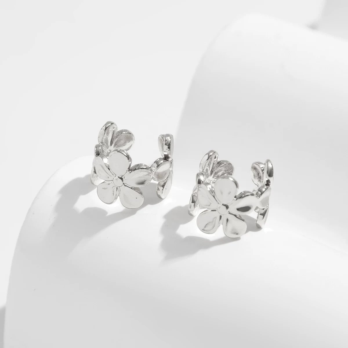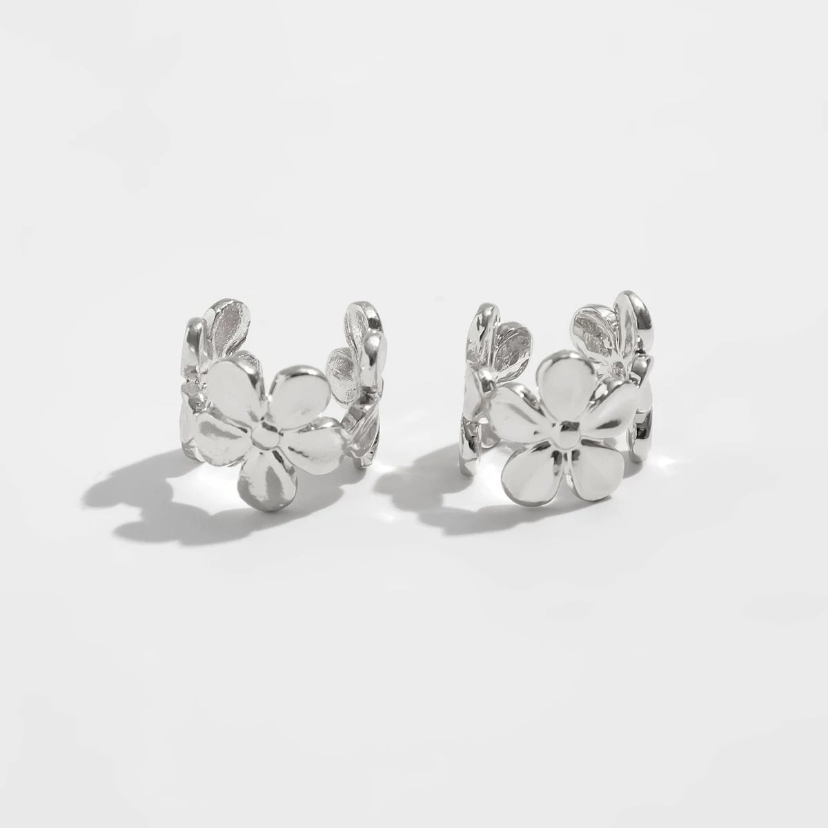 【フリーサイズ】フラワーモチーフ イヤーカフ(シルバー)
