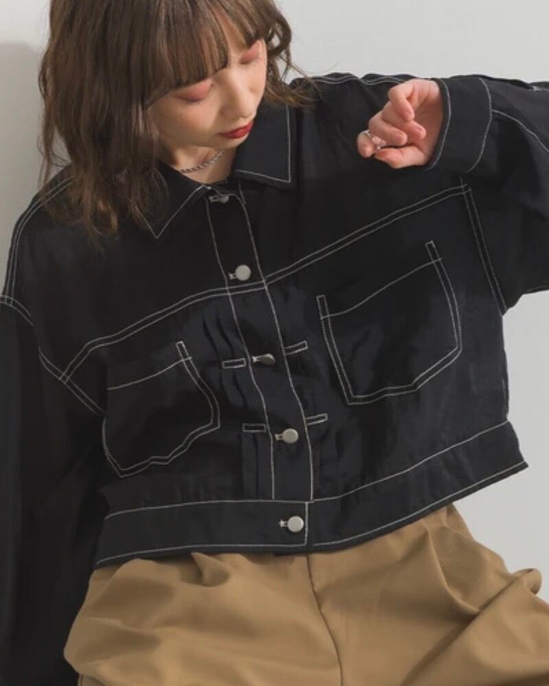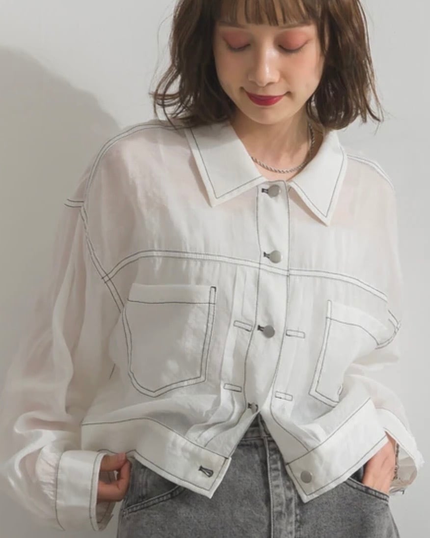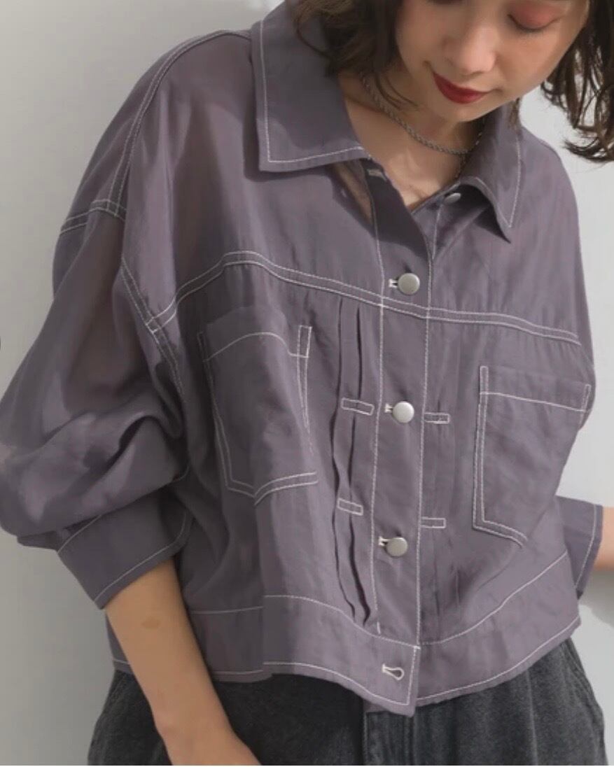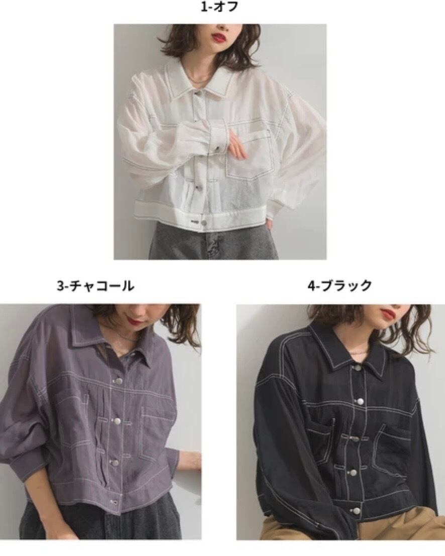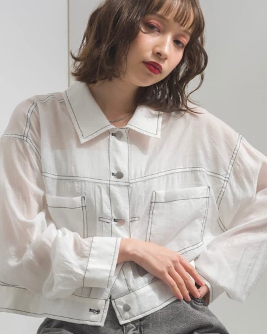 配色ステッチ ボリュームスリーブ シアー Gジャン