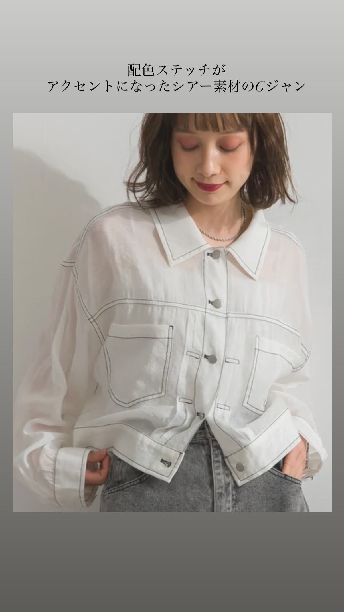キャミソールやタンクトップの上にさらっと羽織って、シアー感を活かした軽やかなスタイリングがおすすめ