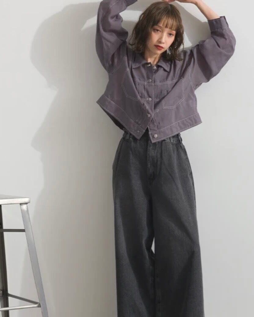 ショート丈なので、ハイウエストボトムやボリュームスカートとも相性抜群で、バランスの取りやすい着こなしが楽しめます