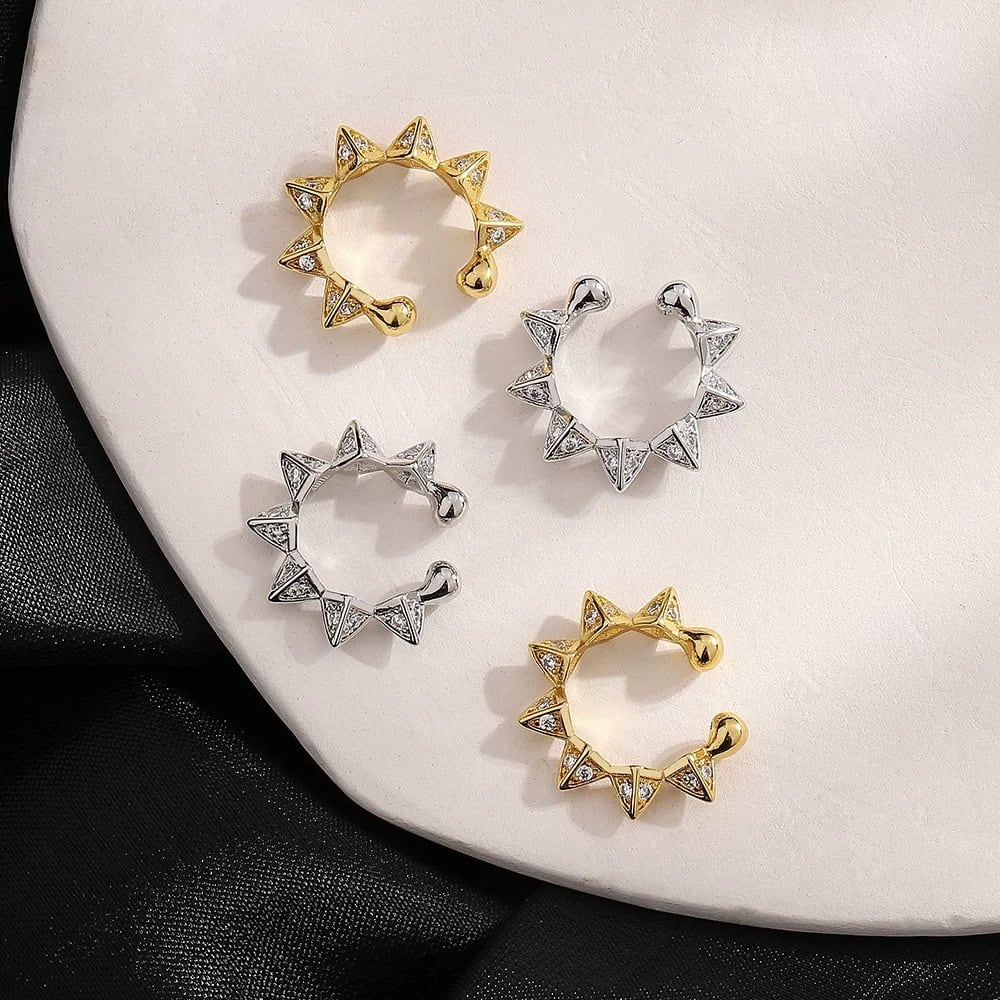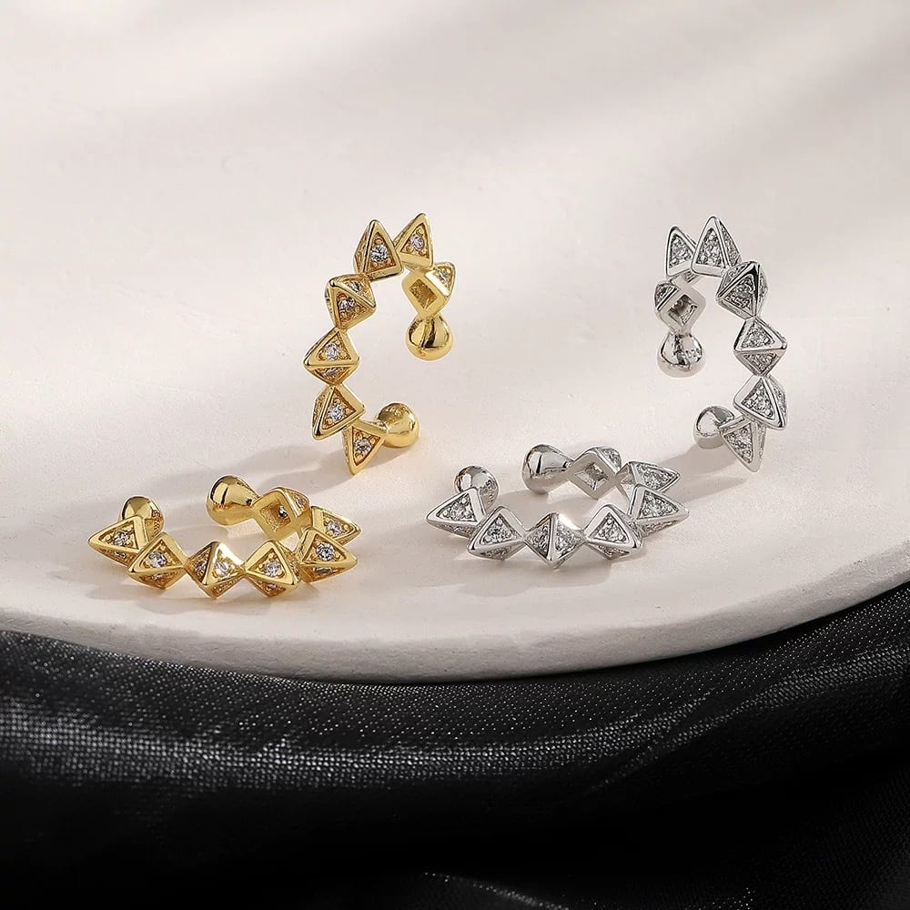 【フリーサイズ】ジオメトリックスタッズ イヤーカフ(ゴールド/シルバー)