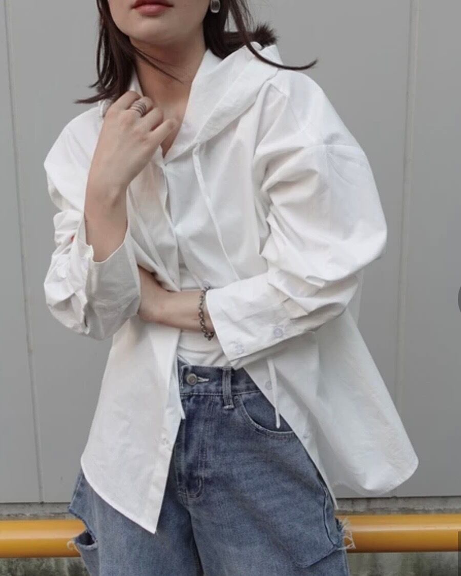 【ブラック】ワッシャー加工フード付きオーバーシャツ