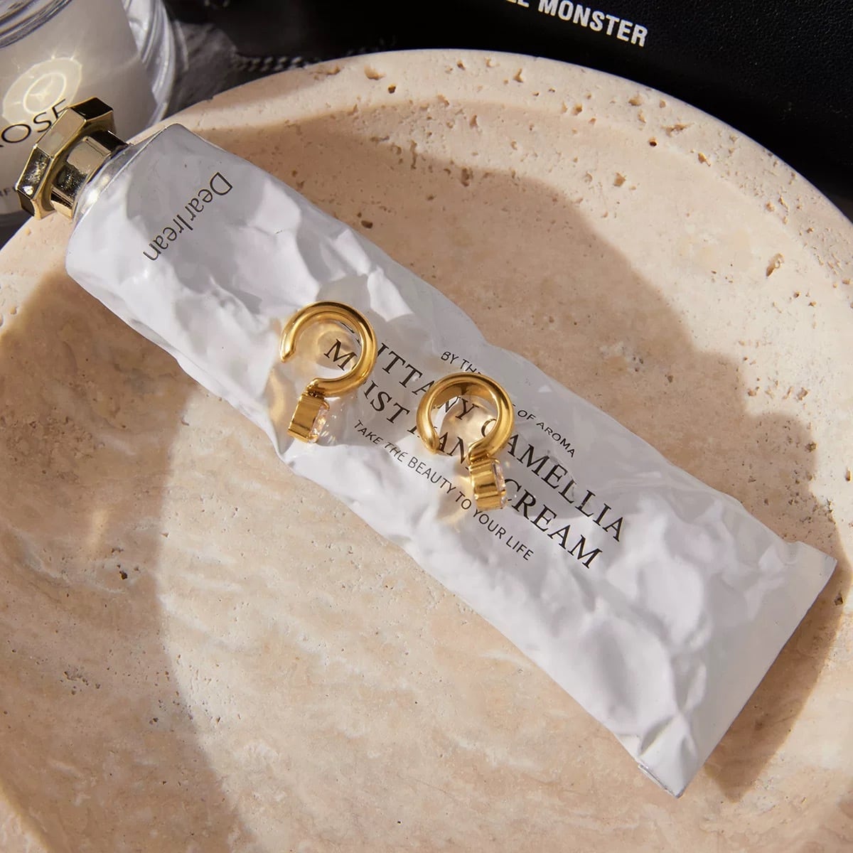 ミニマルなフープに、繊細に輝くストーンを組み合わせたイヤーカフ。