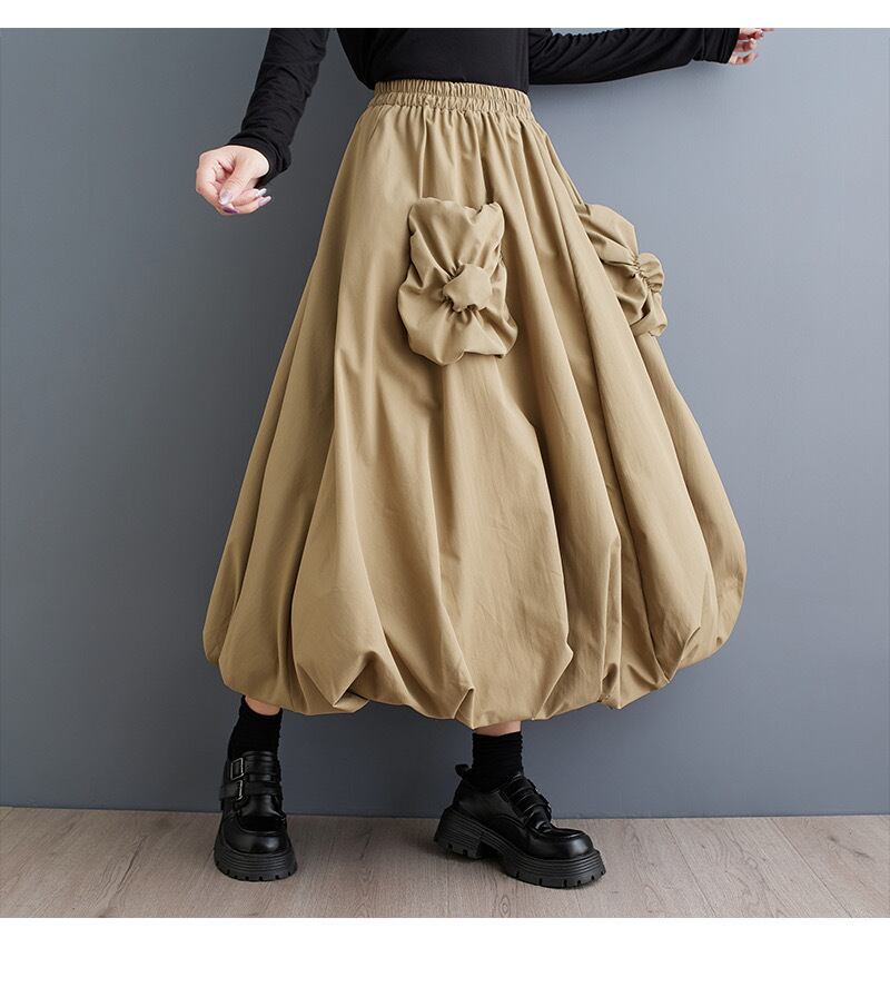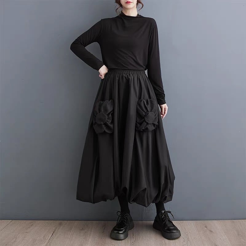 ふんわりとしたシルエットがエレガントかつ快適な履き心地を提供し、動くたびに美しいドレープが魅力的です。