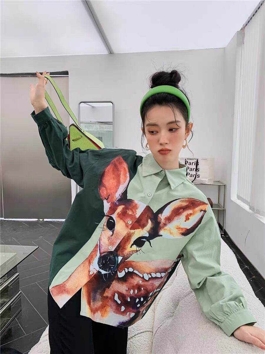 バンビの手書き風イラストが大きく転写されたブラウスです。