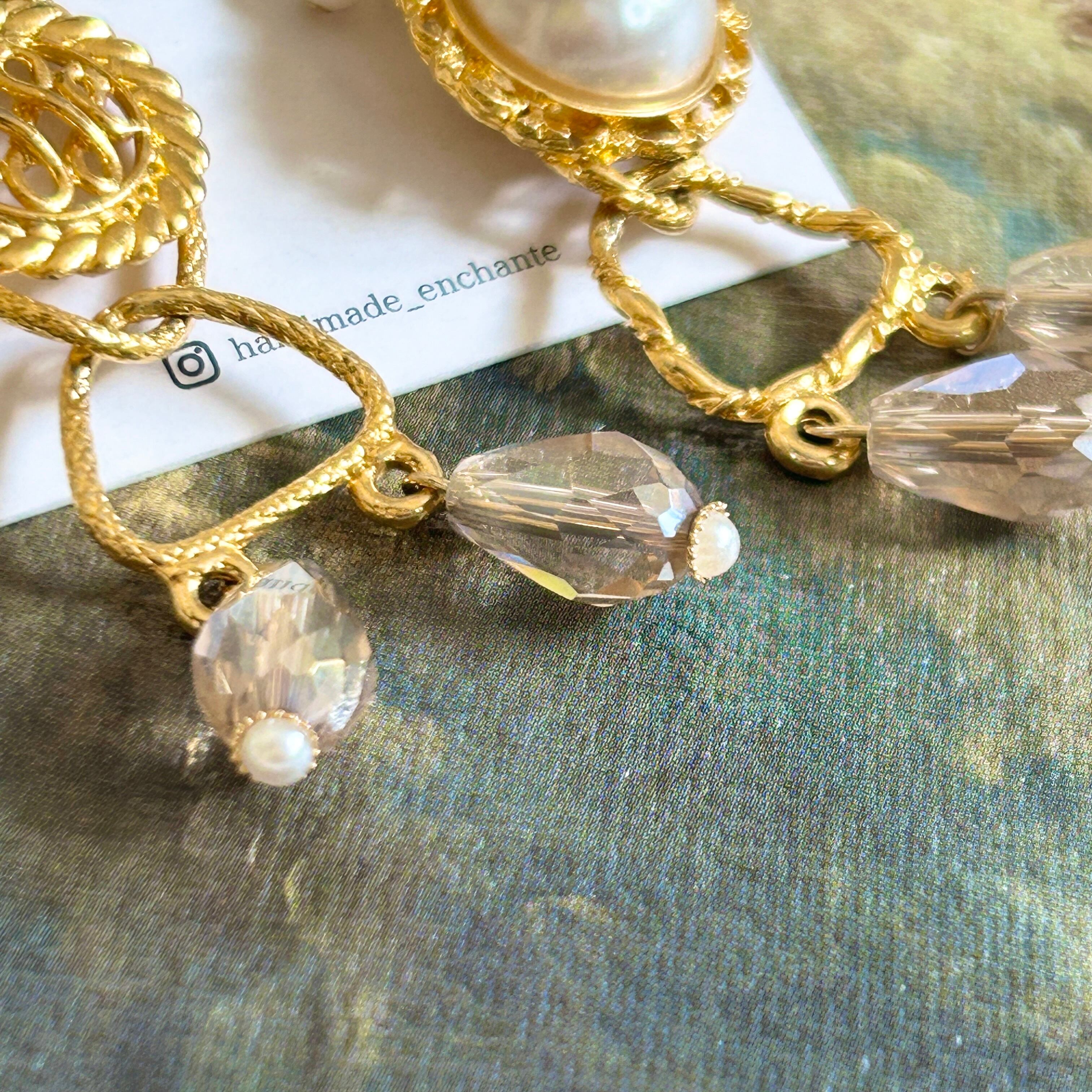 ヴィンテージスワロフスキーをとスワロフスキーパールをトップスに使用しております。