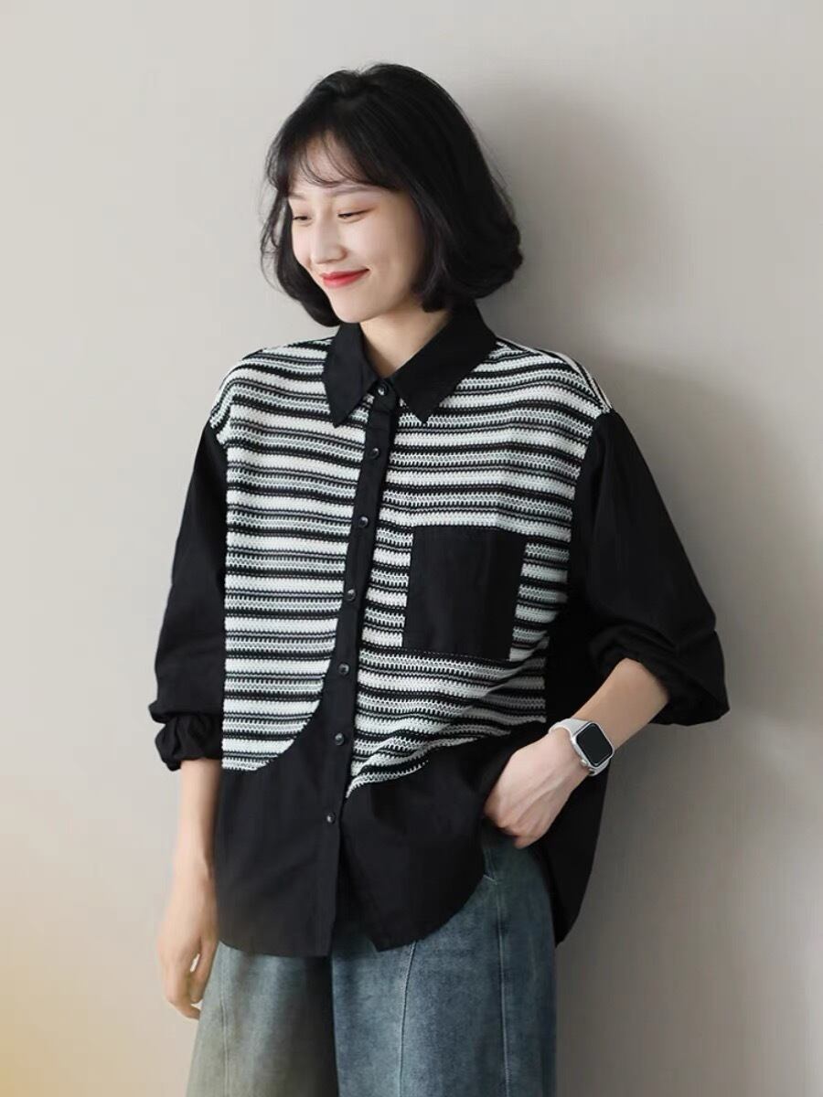 ボーダーニット部分は少し透け感があり、タンクトップ等を合わせて涼しげに着ても、カラー物を着てレイヤードを楽しんでも◎です。