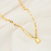 ロック型のキーチェーンがモチーフとなっており、キーや鍵をイメージさせるネックレスは、オシャレなアクセントとして首元を飾ります。