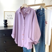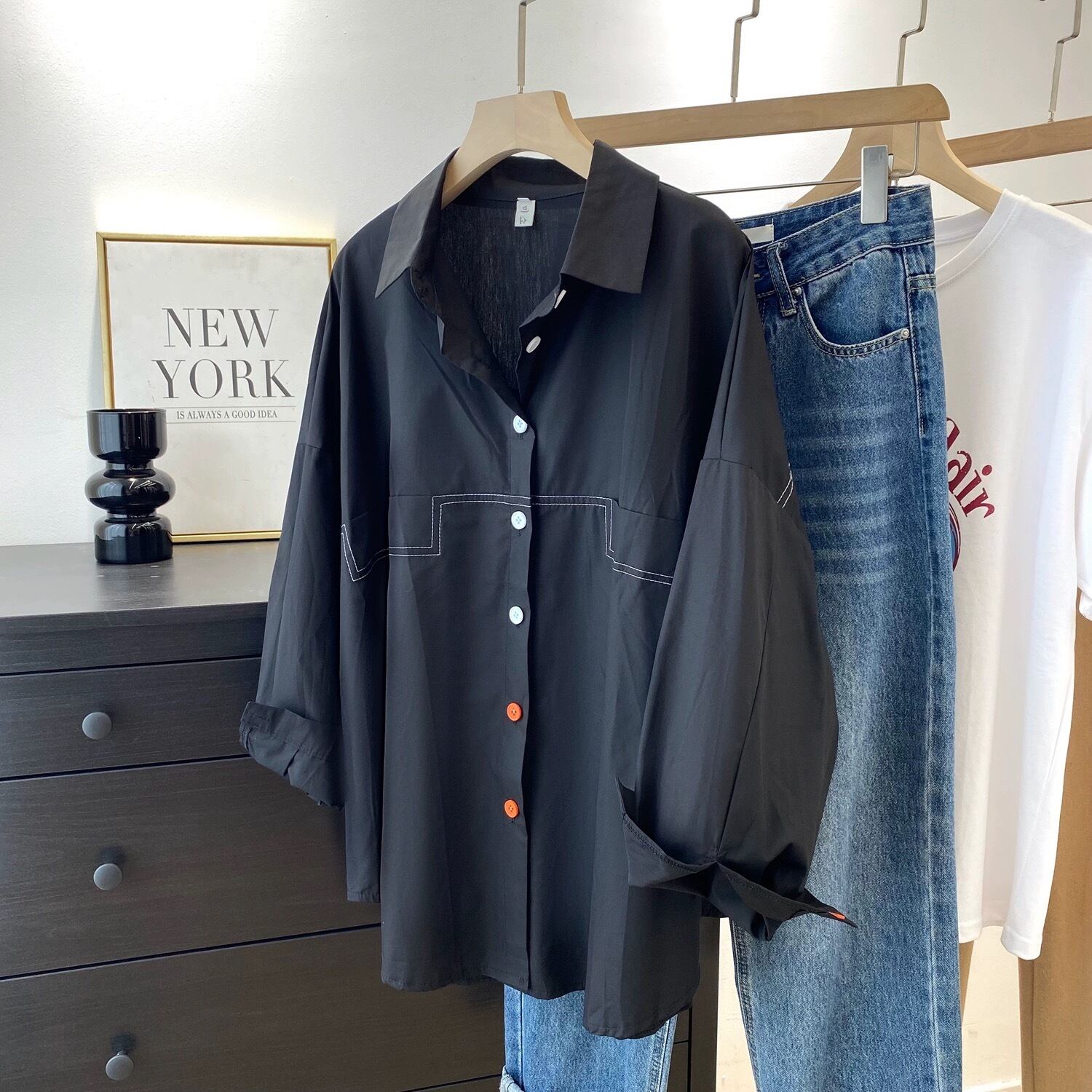 刺繍で描かれた直線的な柄とボタンの2色使いがポイントのシャツブラウスです。