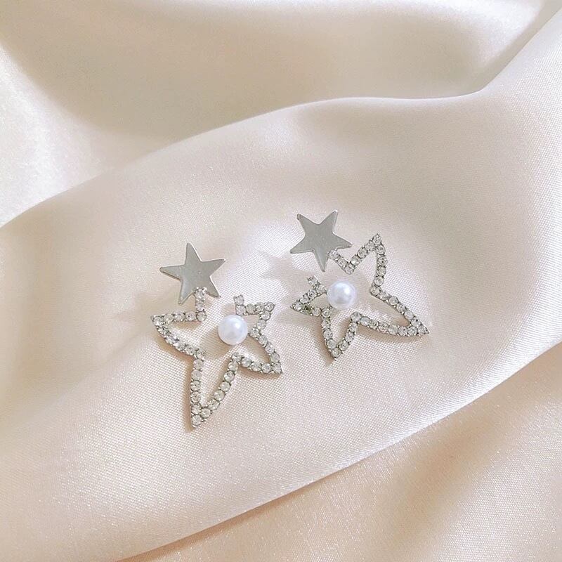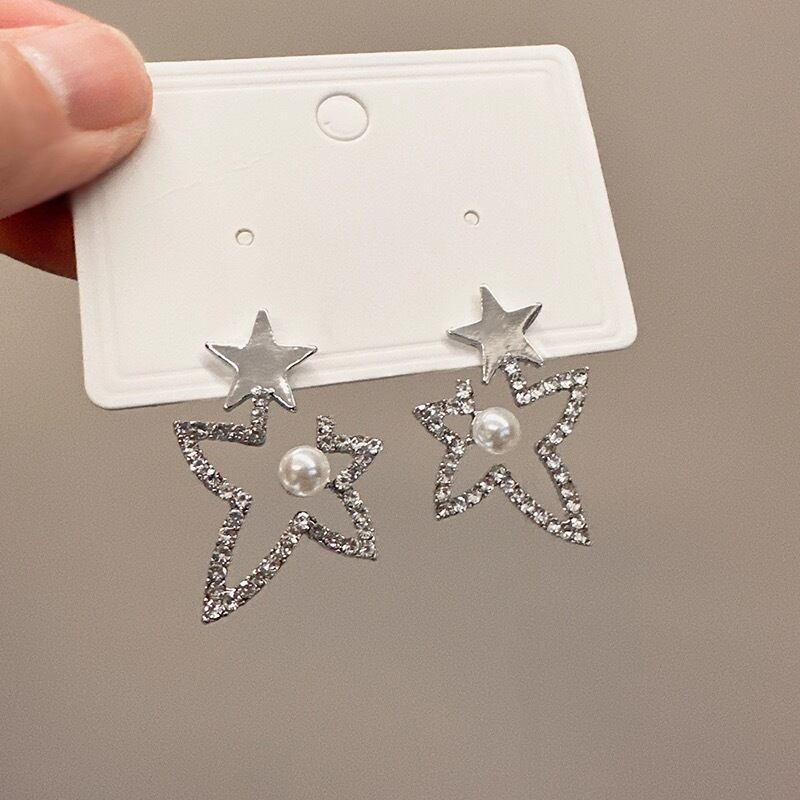 星型のビジューが上品な輝きを放ち、耳元を華やかに演出してくれます。どんなコーディネートにも合わせやすく、日常使いからパーティーシーンまで幅広く活躍してくれます。