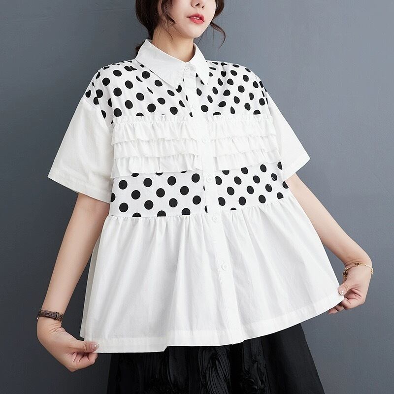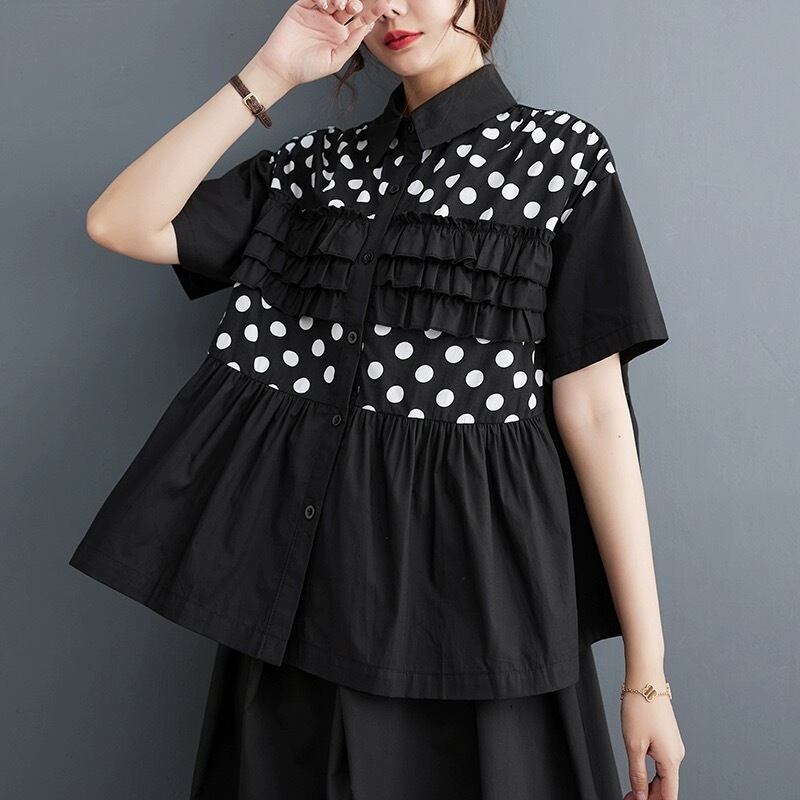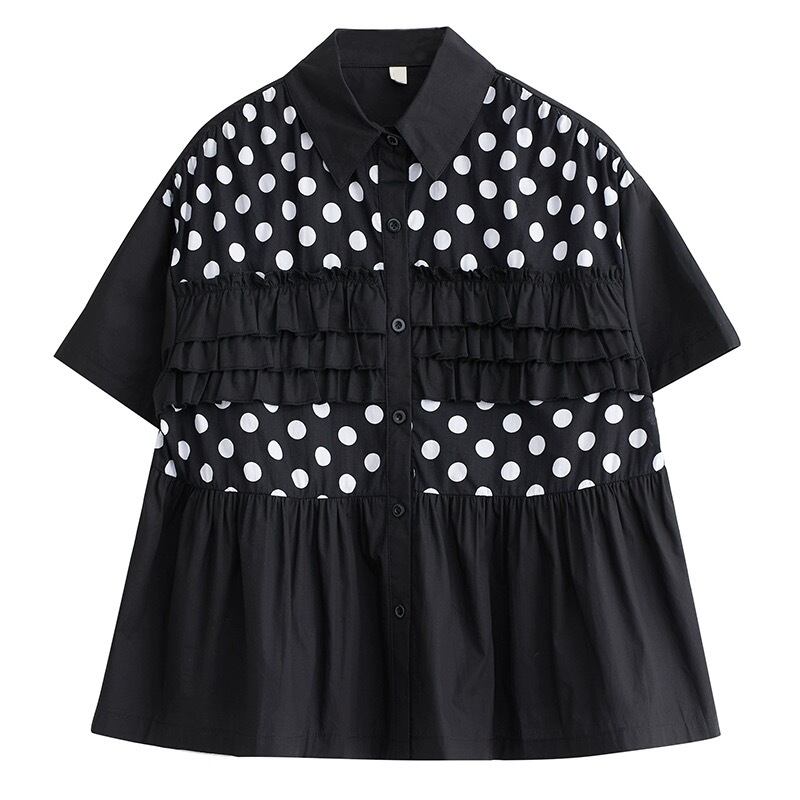 Dot frill switching blouseは、可愛らしいドット柄とフリルデザインが魅力的なブラウスです。エレガントで女性らしい雰囲気を演出し、どんなシーンにもぴったりの一枚です。キーネックとフリルスリーブのデザインが、さりげない華やかさをプラスしてくれます。