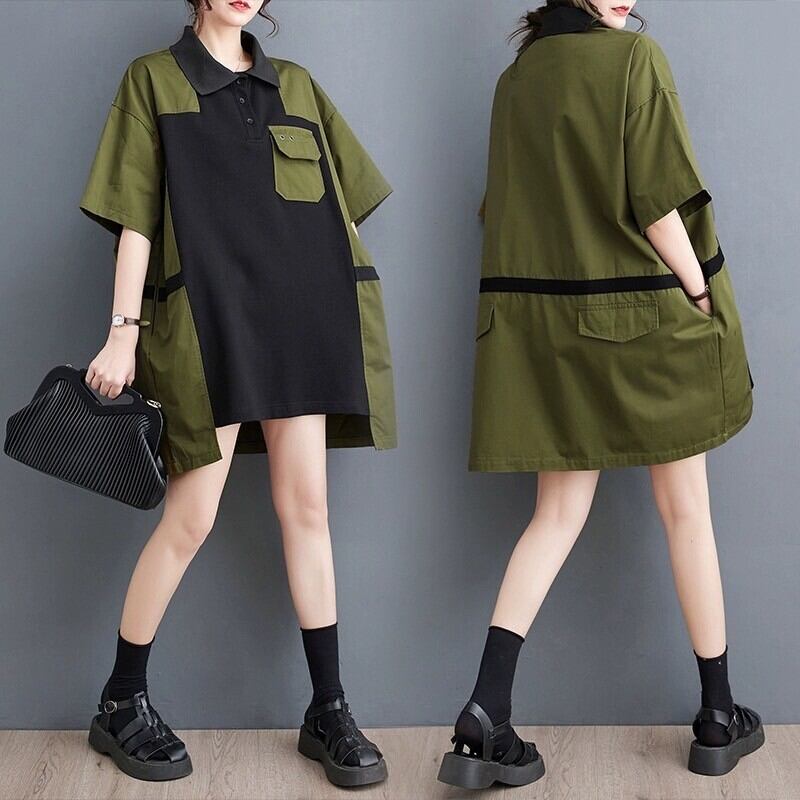 Military oversized T-shirt with collar