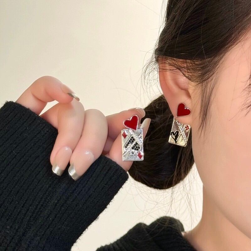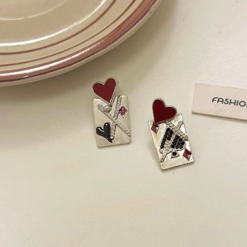 表がハート型、キャッチ部分がトランプ型のピアス。