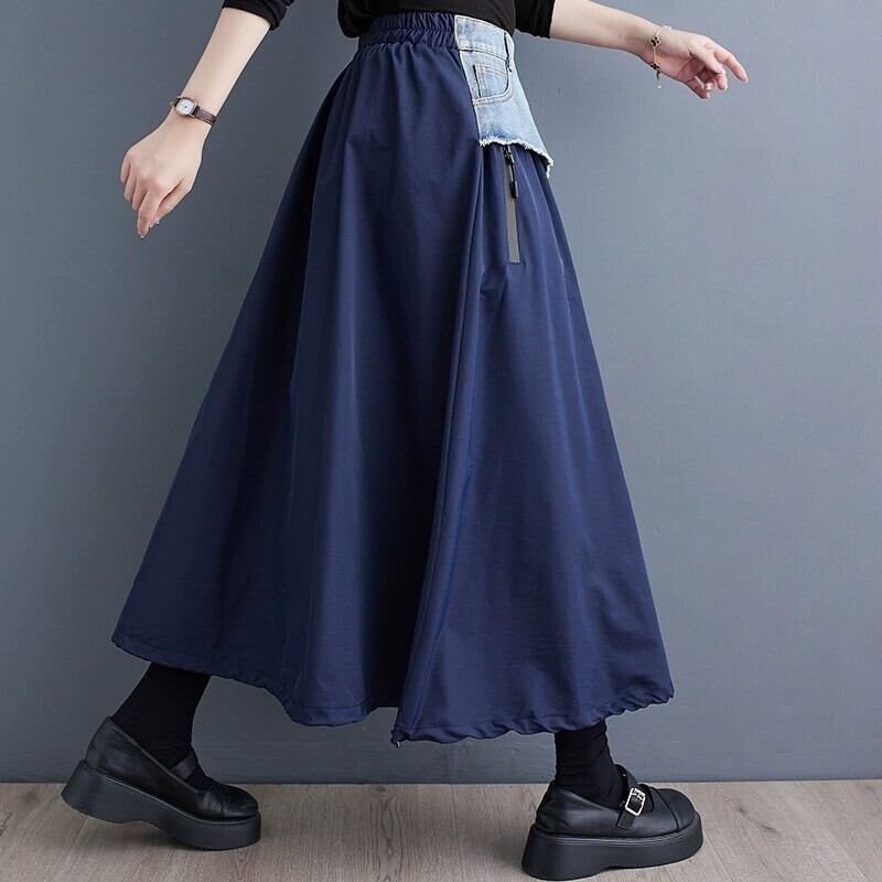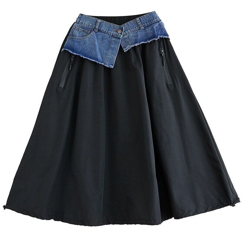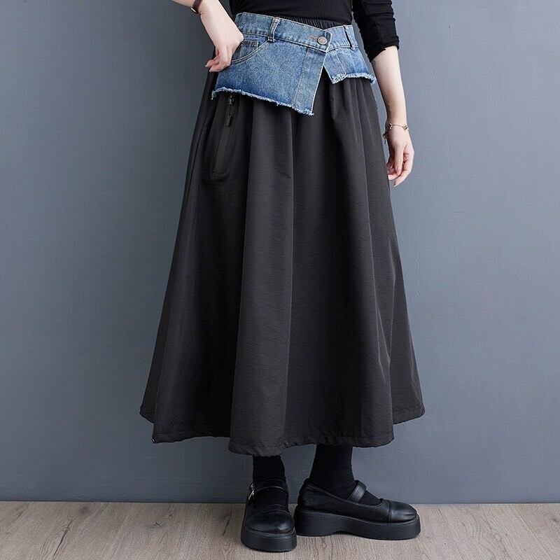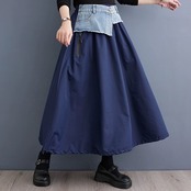 ウエスト部分のデニムデザインが斬新なロングスカート。