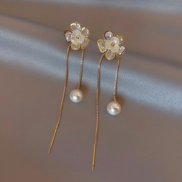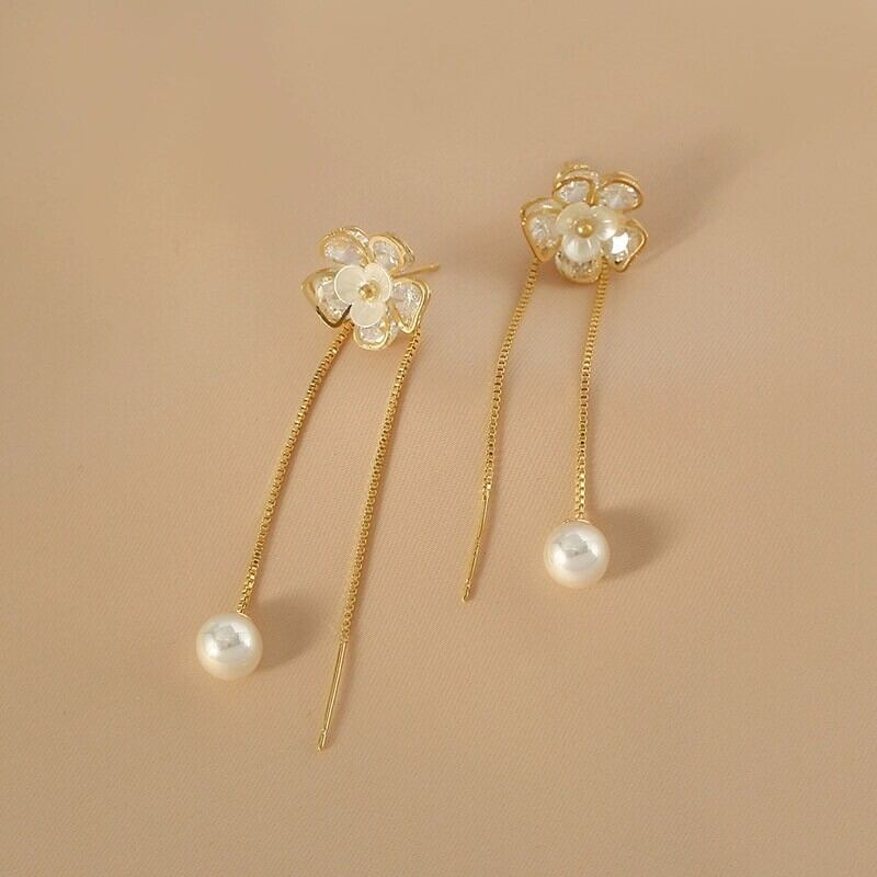 ゴールドとホワイトで上品さと可愛らしさを引き出すピアス。