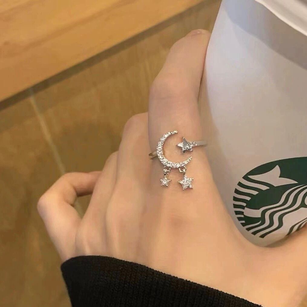 動くたびに揺れる星々がとても魅力的です。夜空のような美しいリングを身に着けて、特別な日を演出しましょう。