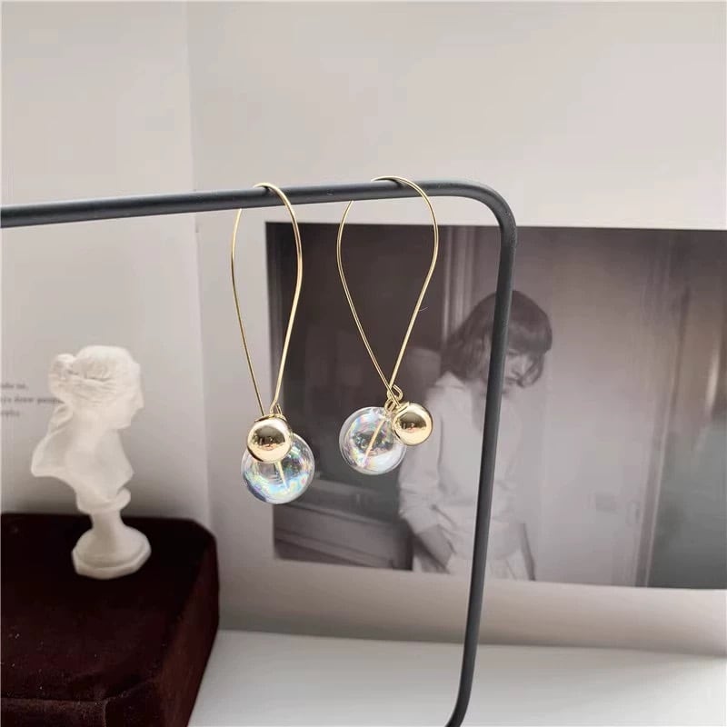 キラキラと光を美しく反射する繊細なガラスボールの耳飾りです。どんな服装にも優雅さと奇抜なタッチを加えるのに最適です。