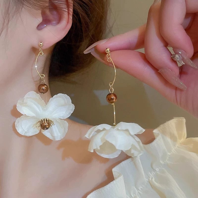 White tulle flower earring/pierce