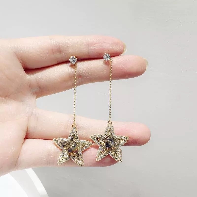 星のビジューが煌めくピアスで、まるで星空を身に纏ったような輝きを演出します。