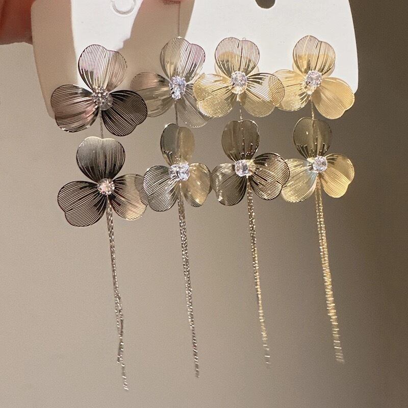 Metal Flower Sheer Design earrings/pierce
