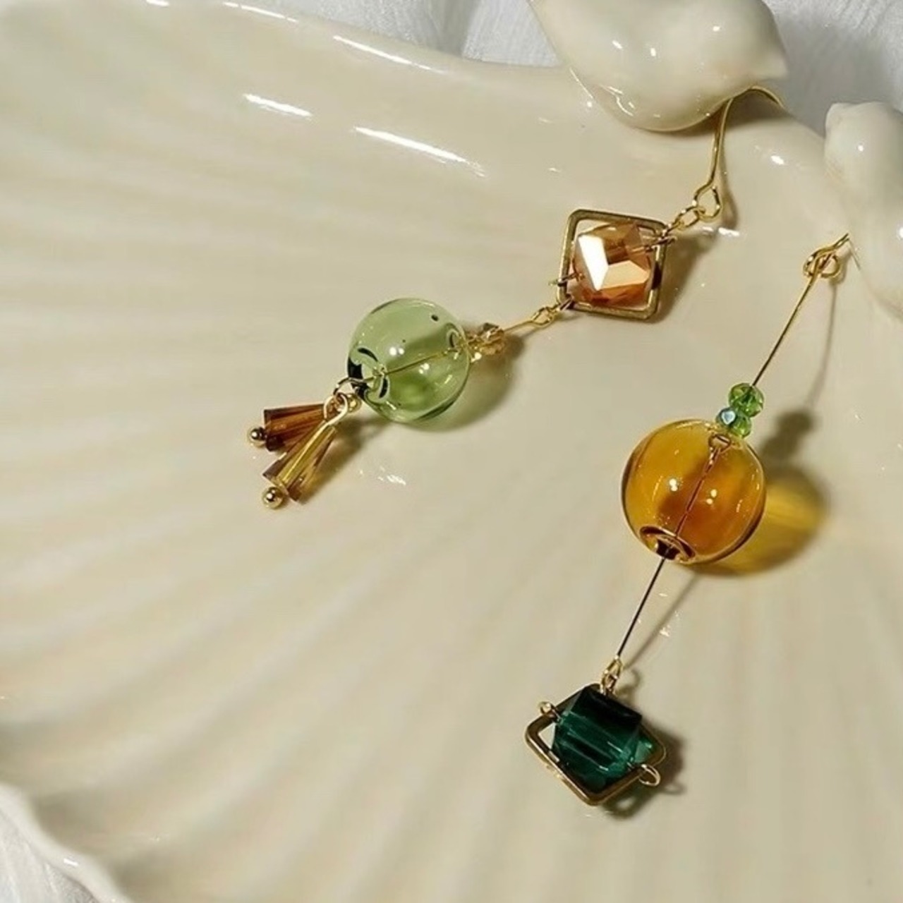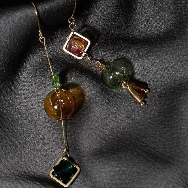 非対称なデザインがおしゃれさを演出します。軽やかな揺れが耳元で華やかさをプラスし、シンプルなコーディネートにも遊び心を添えてくれるアイテムです。