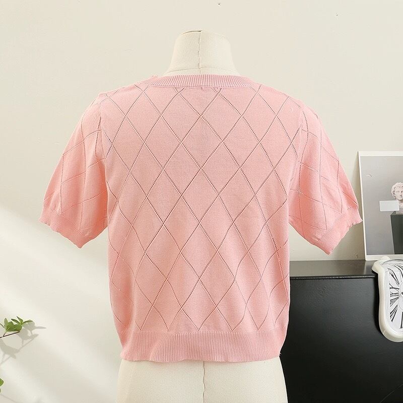 アーガイル柄に透けるので中に合わせるトップスで個性を出しても◎