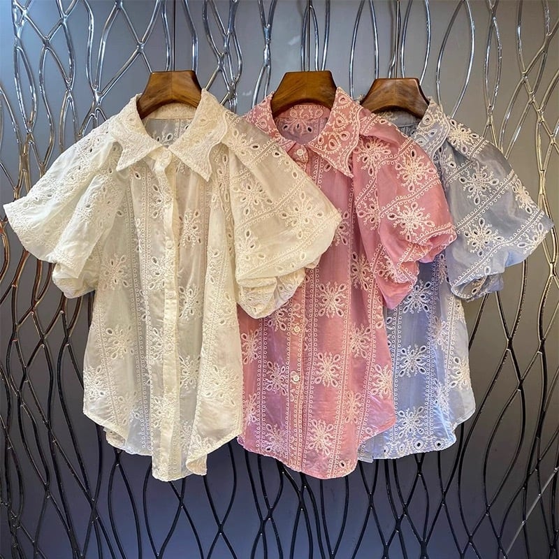 レースの様なカッティングが施されており、ボリュームスリーブが華やかさをプラスしてくれます。
