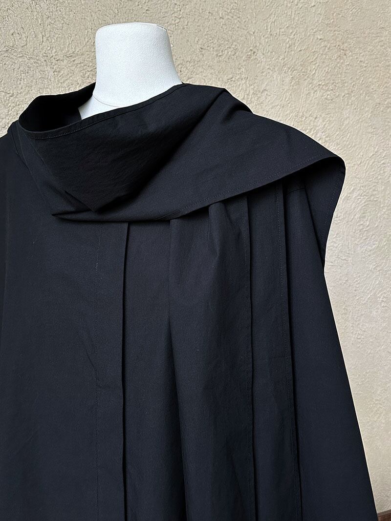 肩から胸元にかけてのエレガントなドレープデザインは、女性らしさと動きを感じさせ、まるで一枚のアート作品のような存在感を放ちます。