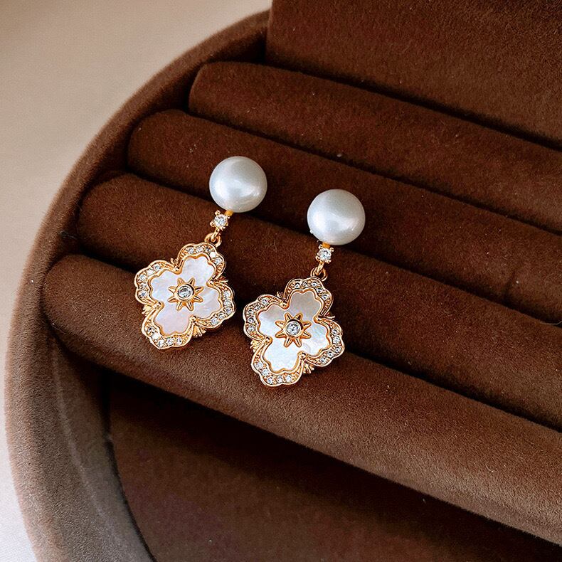 華やかで繊細なフラワーモチーフと上品なパールが融合したピアス。