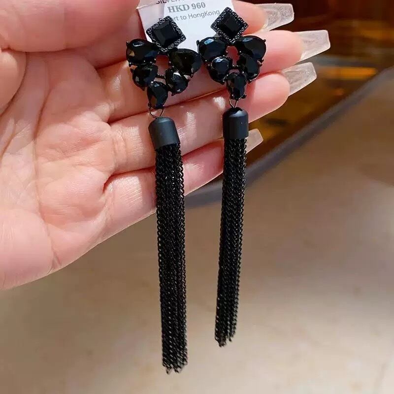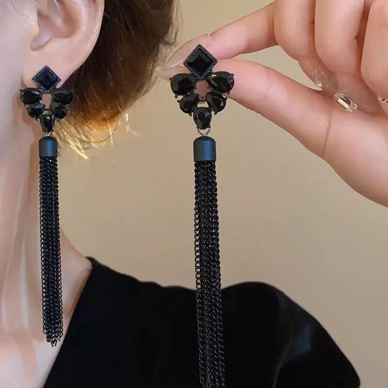 都会的で洗練されたデザインが魅力のブラックタッセルピアス。
