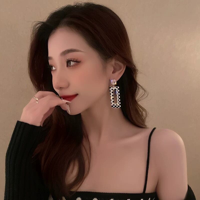 大胆で印象的なデザインが特徴のチェッカーボード柄スクエアピアス。