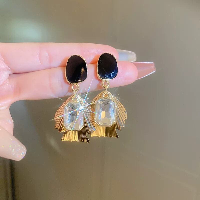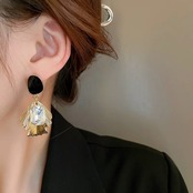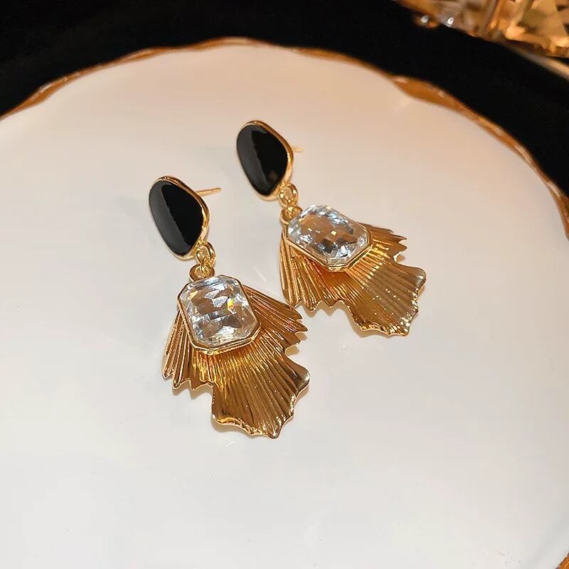 高級感あふれるゴールドリーフとブラックストーンが特徴のエレガントピアス。