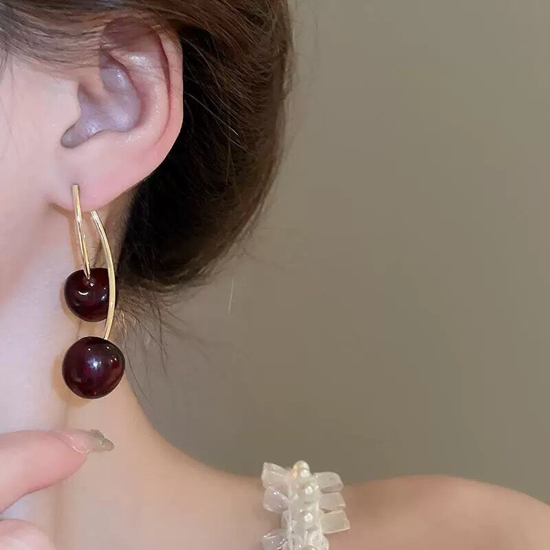 深みのある赤が印象的なチェリーモチーフピアスは、大人のエレガンスを演出するアクセサリーです。