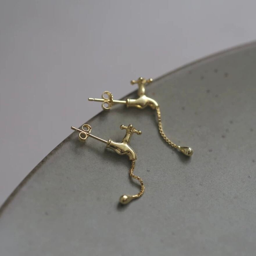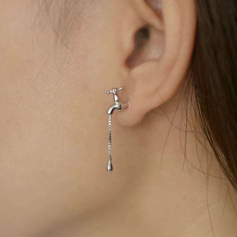 滴り落ちる水滴をイメージしたディテールが特徴的で、モダンアートのような個性を耳元にプラスします。