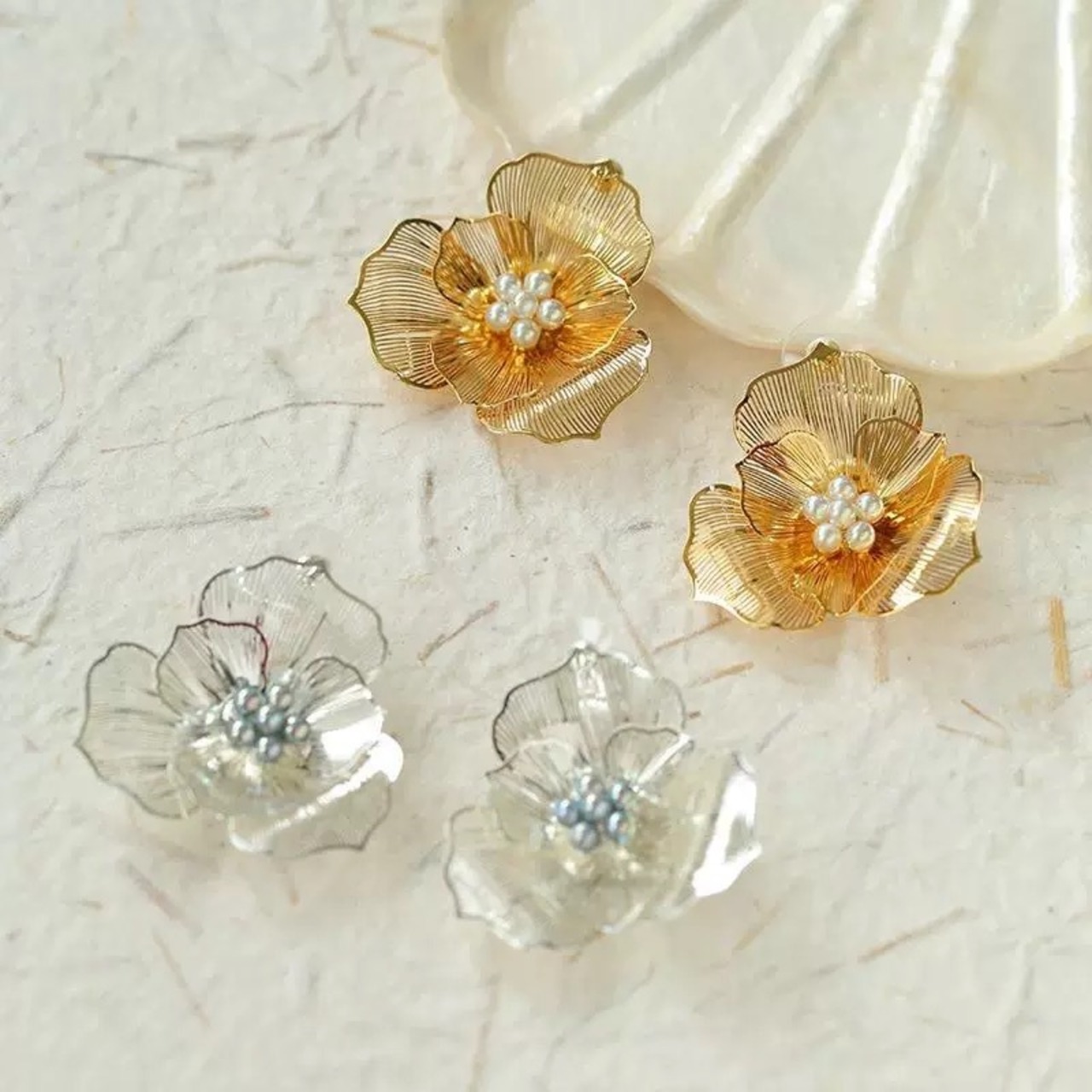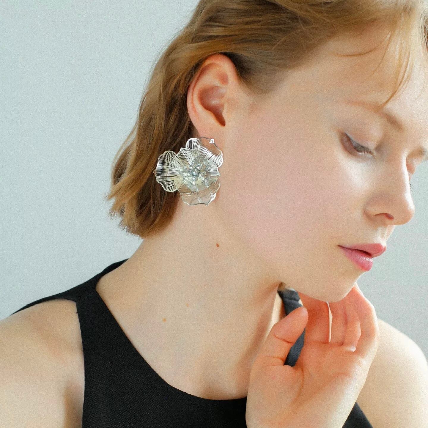 繊細にデザインされた花びらが立体感を演出し、耳元を華やかに彩ります。
